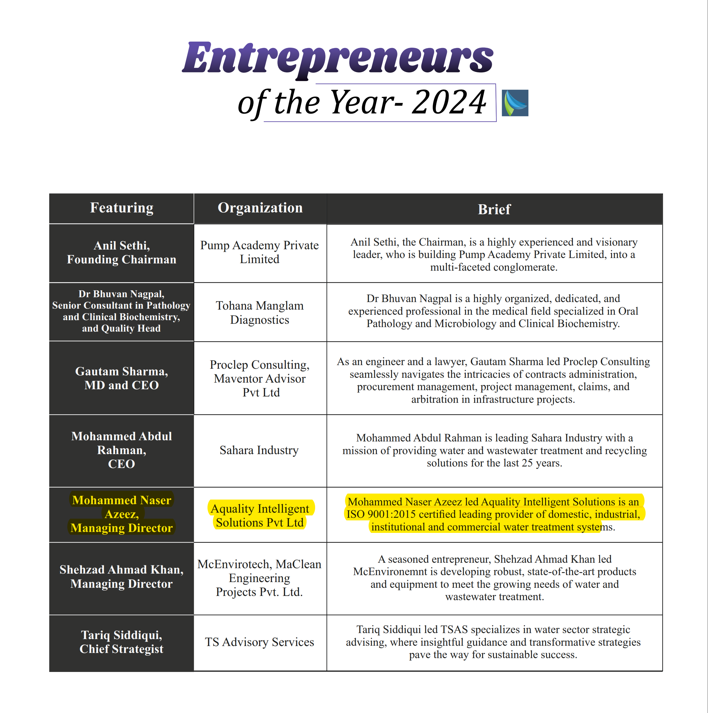 Entrepreneur of the Year 2024: MD-AQUALITYApril 1, 2024 by aquality News Entrepreneur of the Year 2024: MD-AQUALITYInsights Success, April 2024 Read More