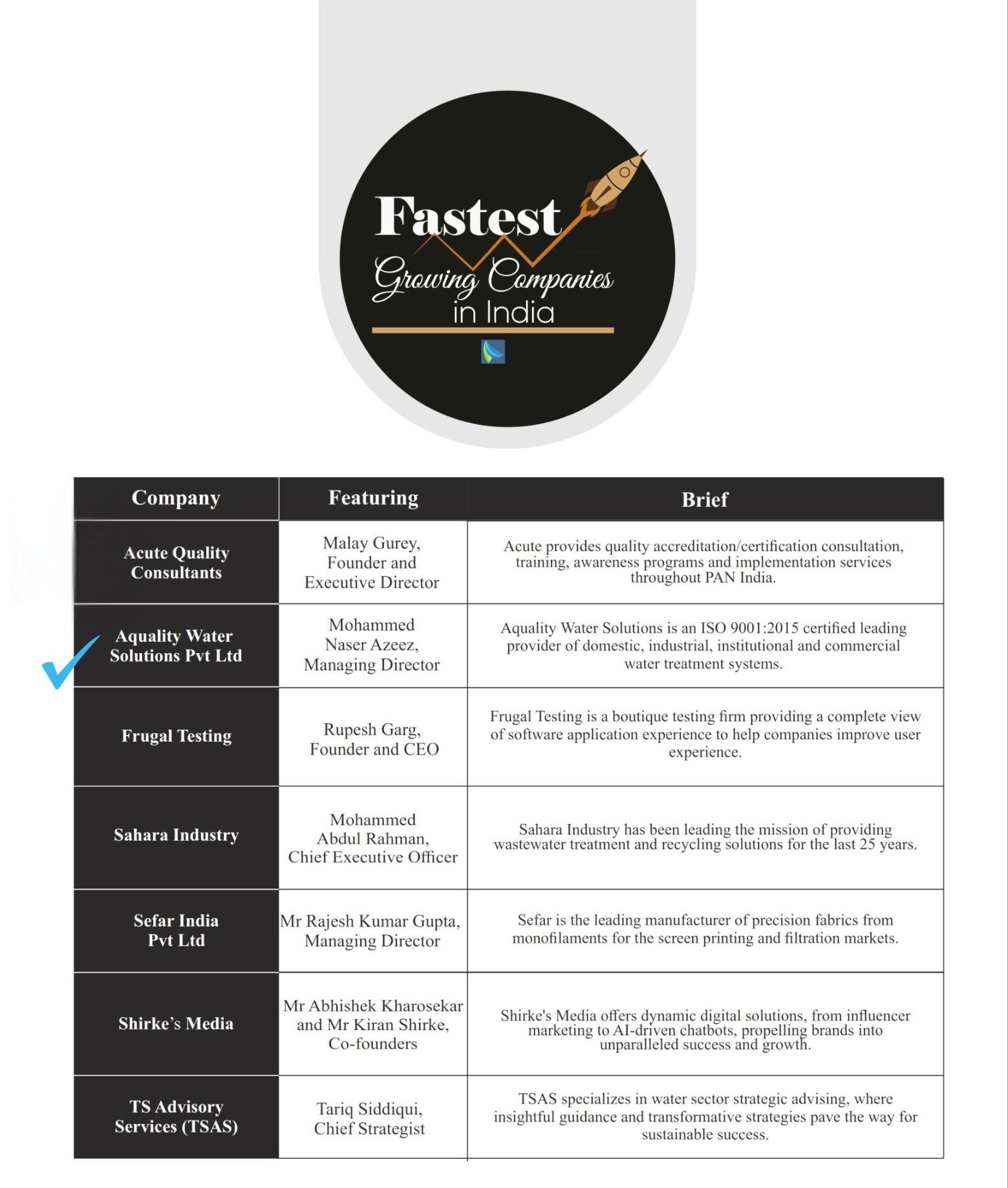 Fastest Growing Company in India in 2023:AQUALITYNovember 1, 2023 by aquality News Fastest Growing Company in India in 2023:AQUALITYInsights Success, November 2023 Read More