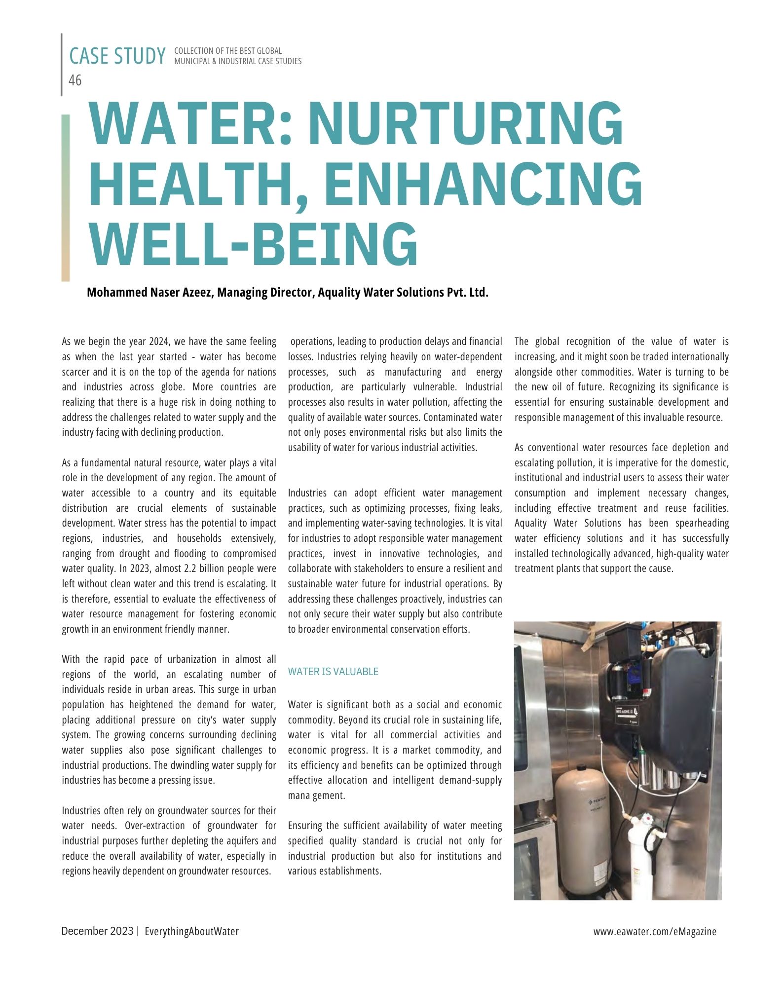 Water: Nurturing Health, Enhancing Well-BeingDecember 1, 2023 by aquality News Water: Nurturing Health, Enhancing Well-BeingEverything About Water, December 2023 Read More